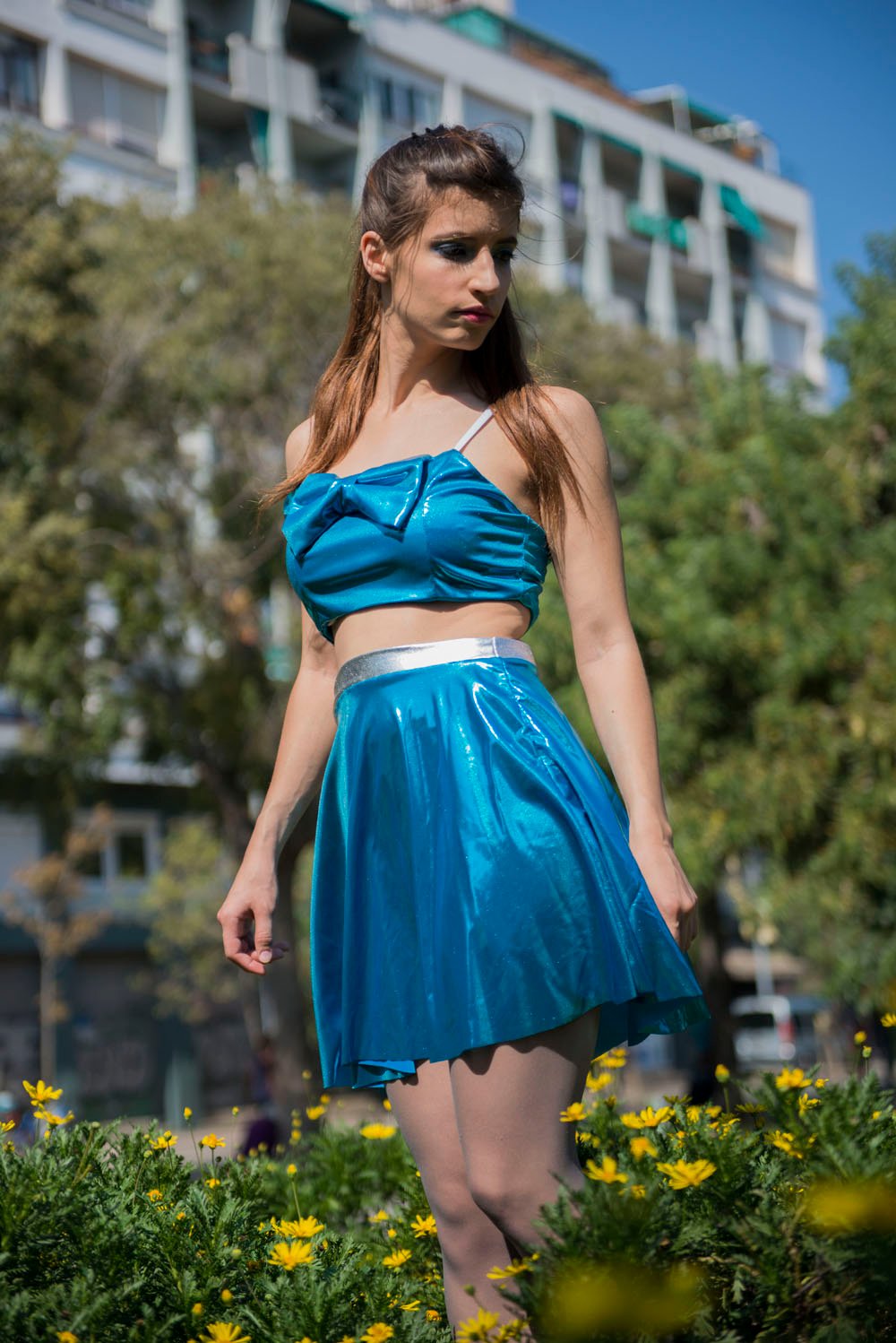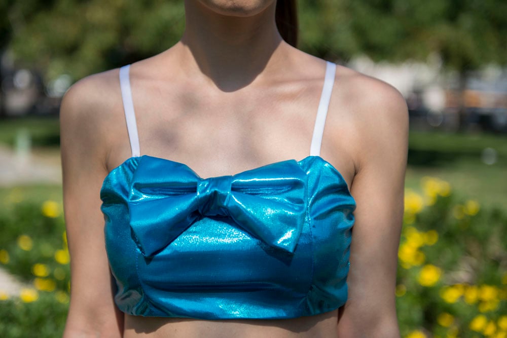 Elastic shiny top with a big bold bow on the center. Light weighted and fun to combine with other pieces, such as our "Caramel" series skirts. It fit parfectly the chest as it's boned in the front part.