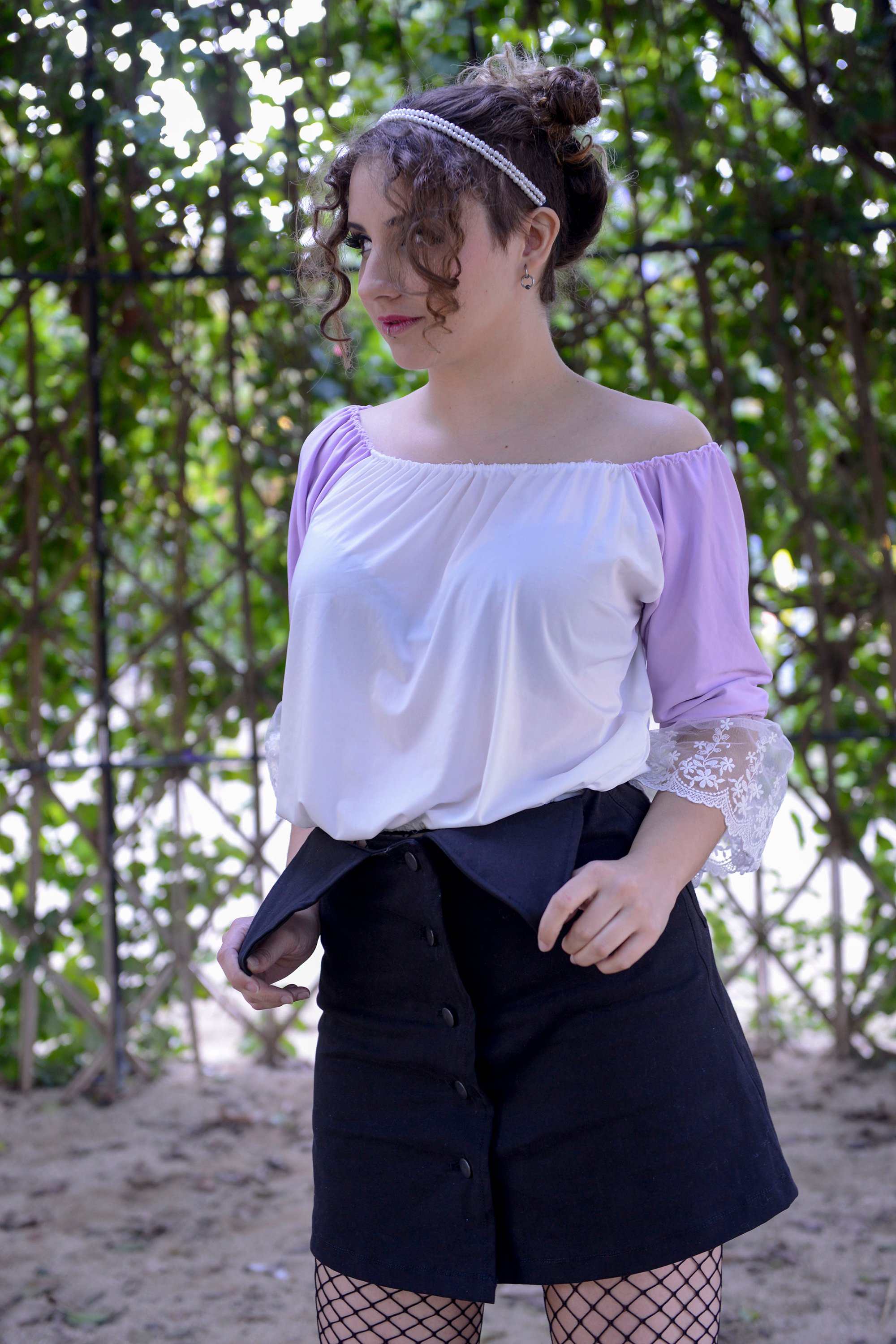 Cat shaped inspired A line skirt with front bottoms made with black denim fabric.