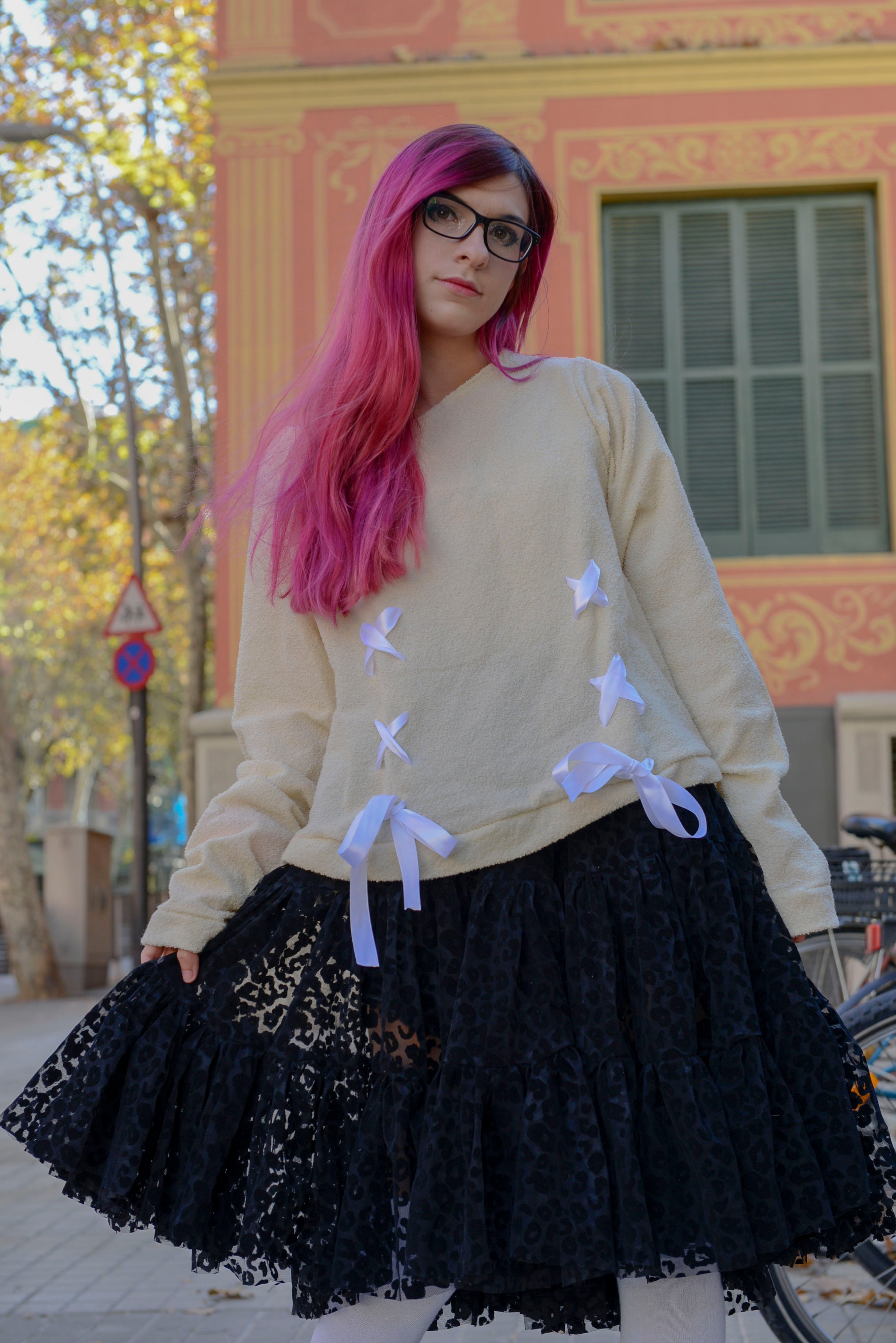 Oversized, super warm and cozy pastel yellow sweater adorned with the most adorable white ribbon. Have you seen that before in your corner store?