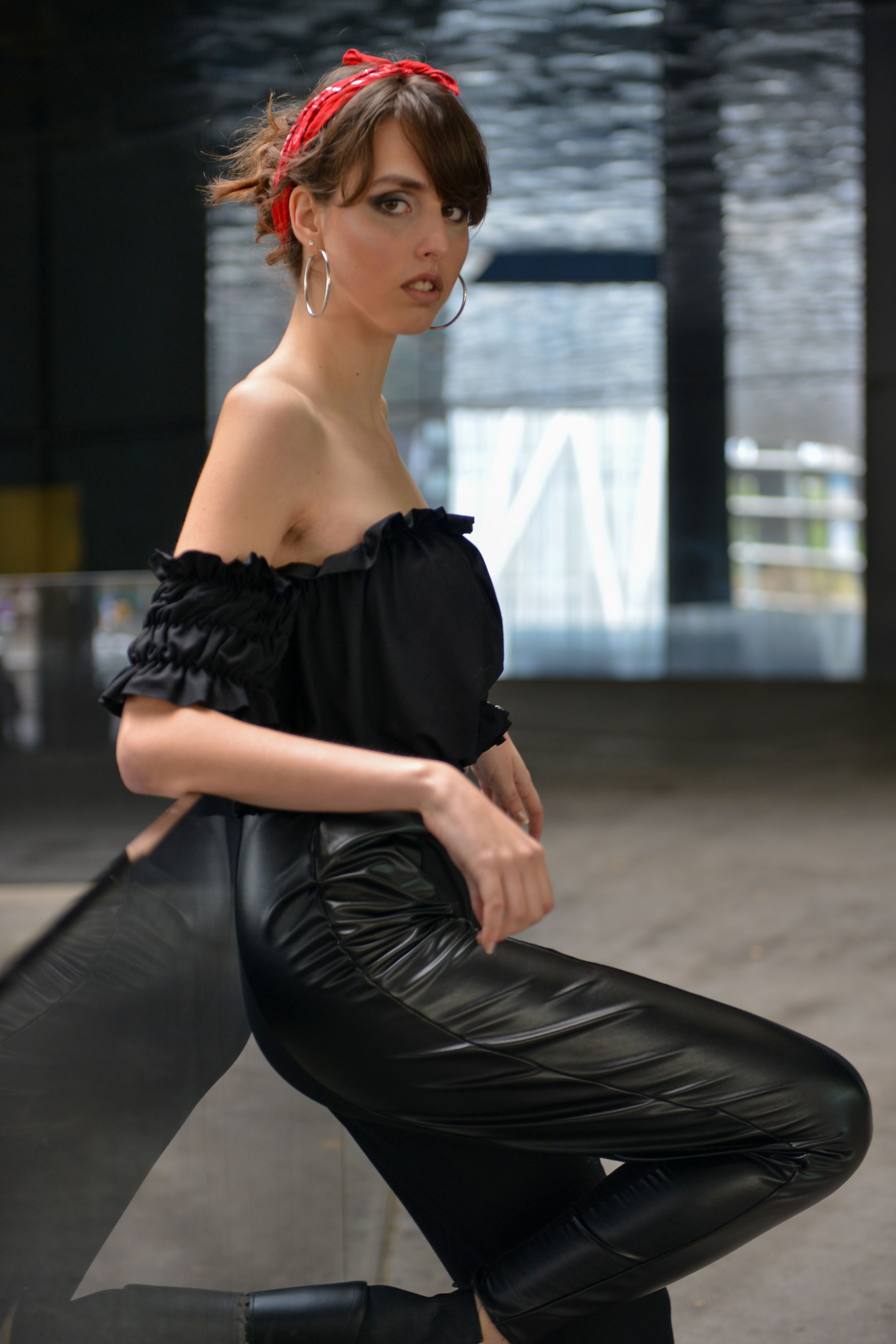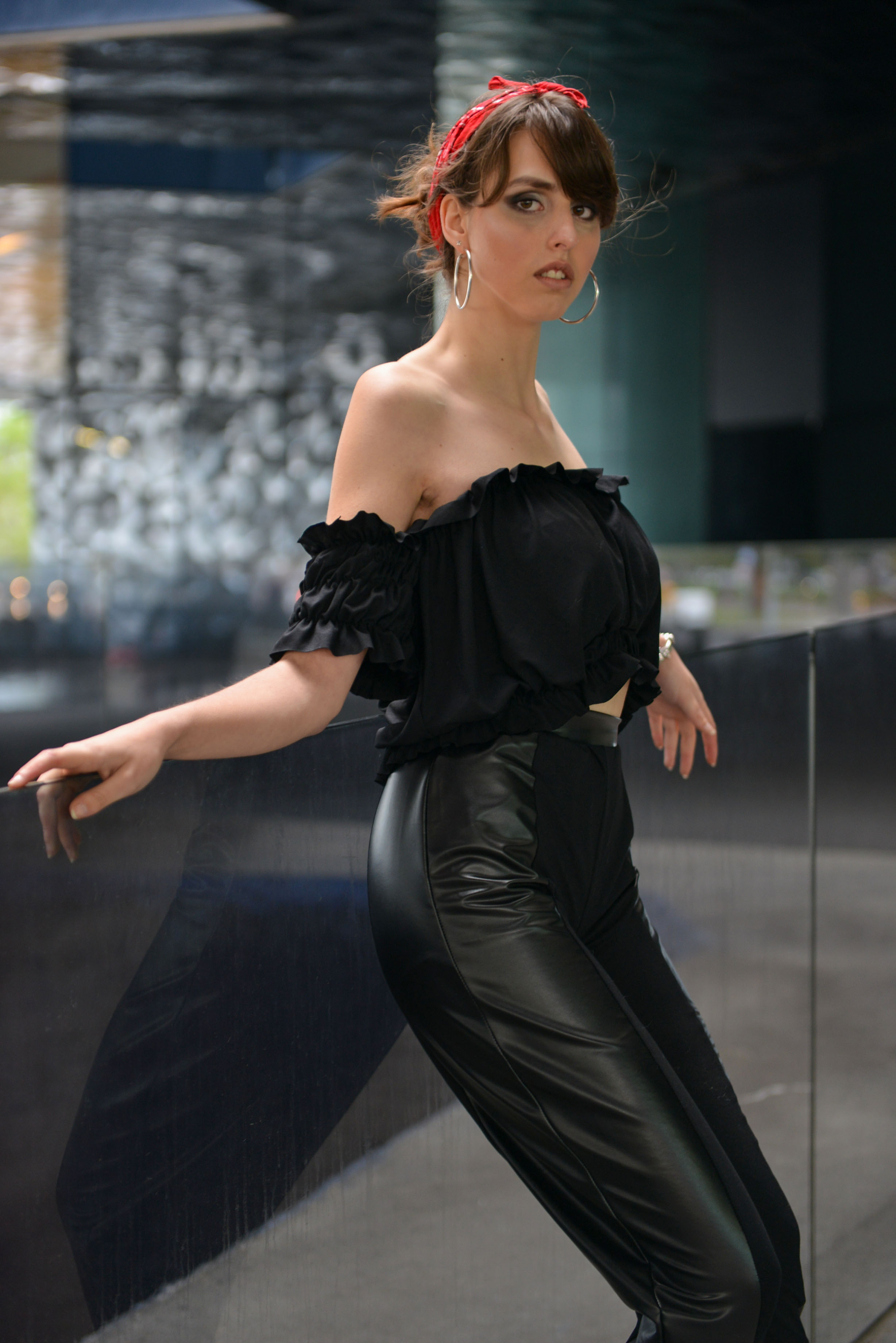 "Blacksweet" Fakeleather-cotton elastic leggin pants