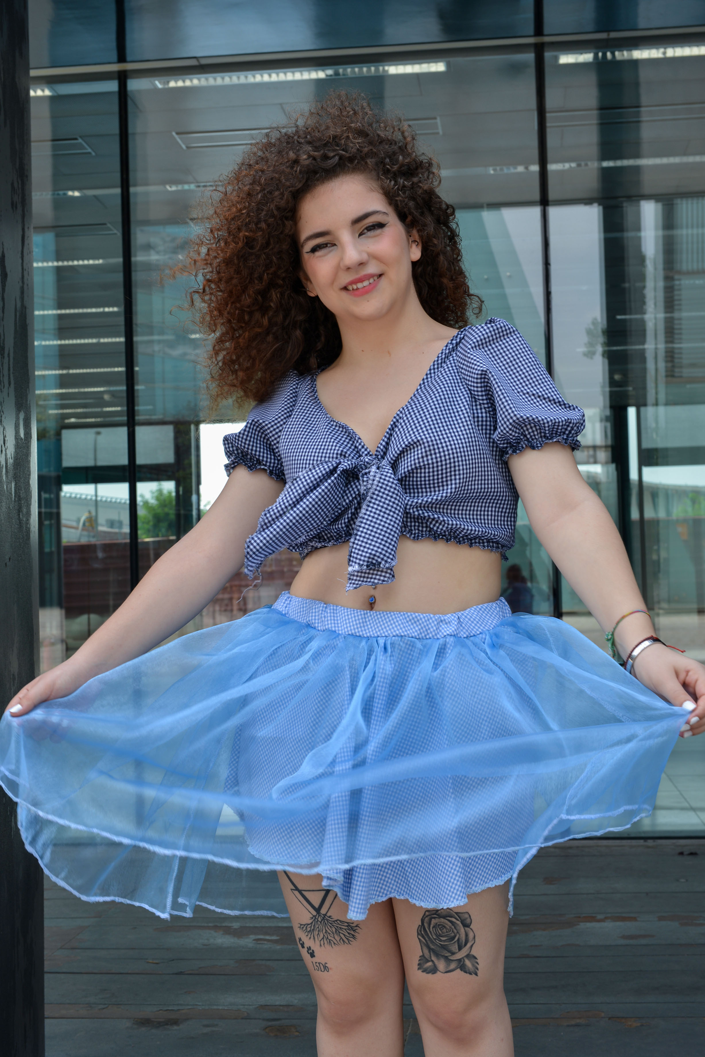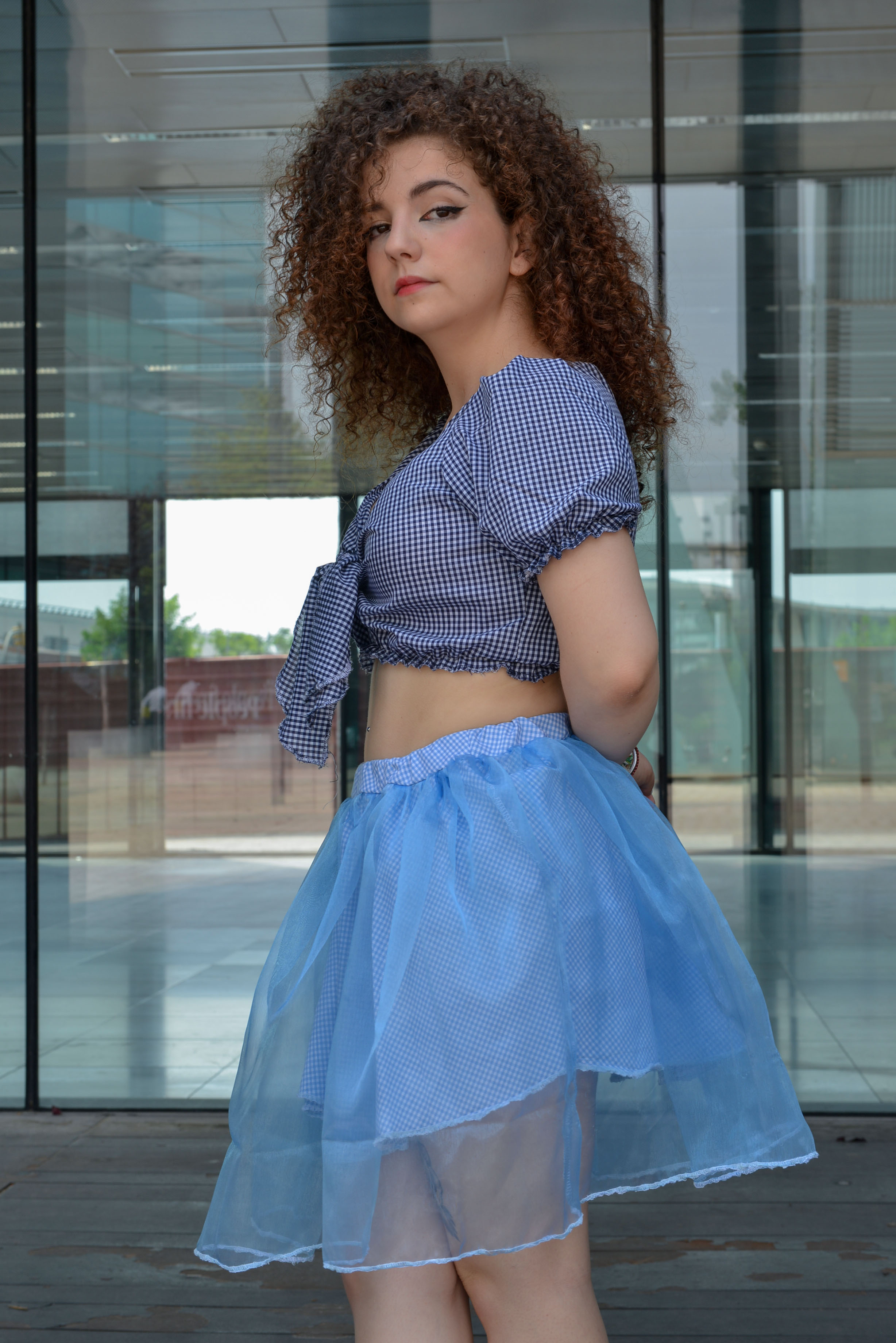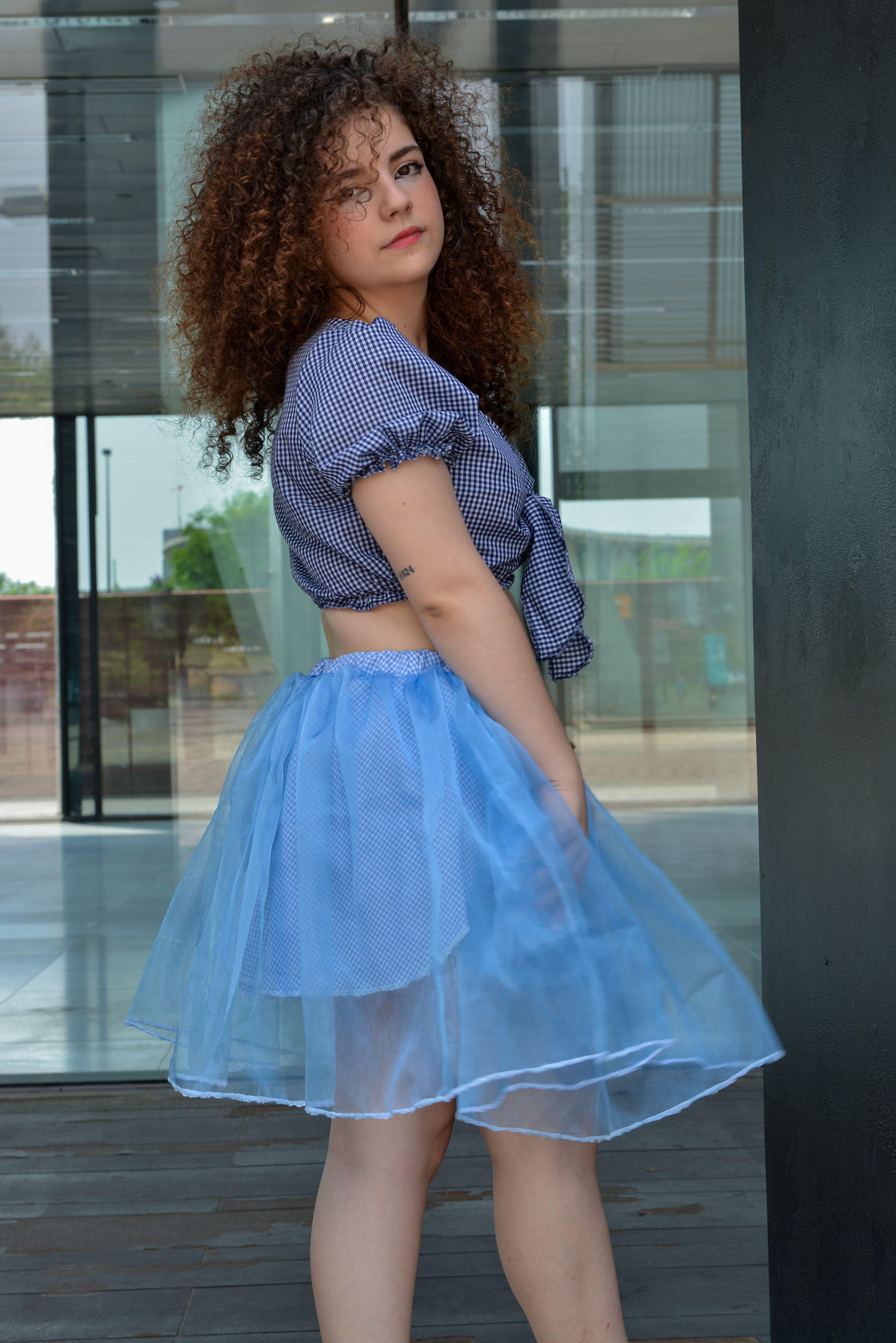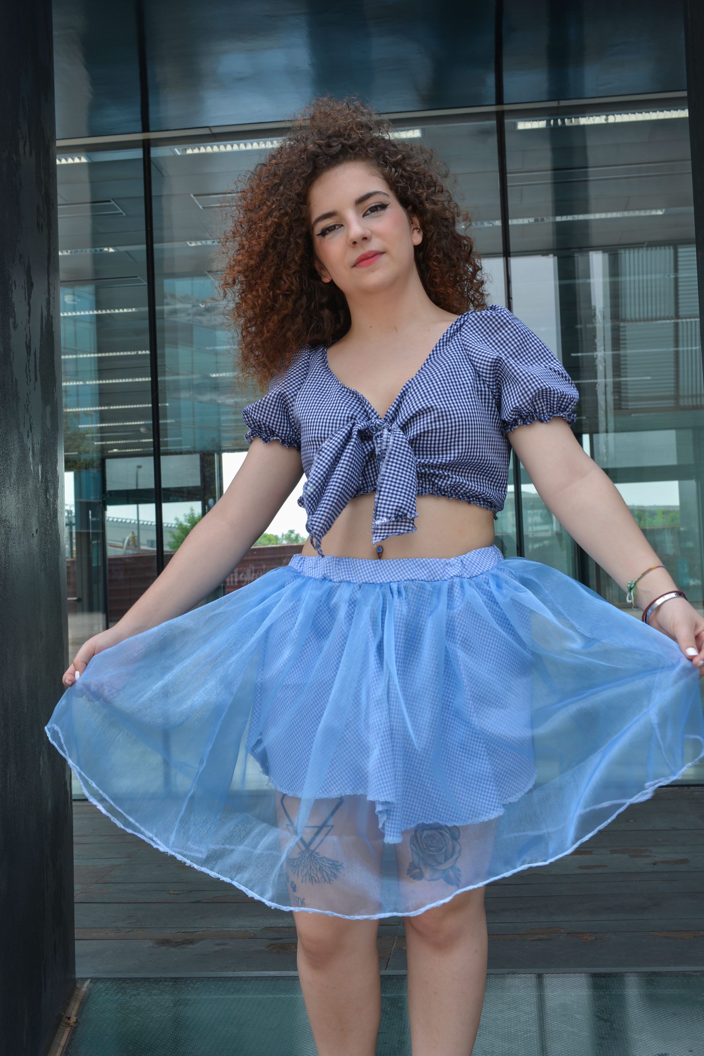 Made with cotton vichy and sparkle organza this skirt will give the cutest touch to your blue outfits (the trendy colour NOW).