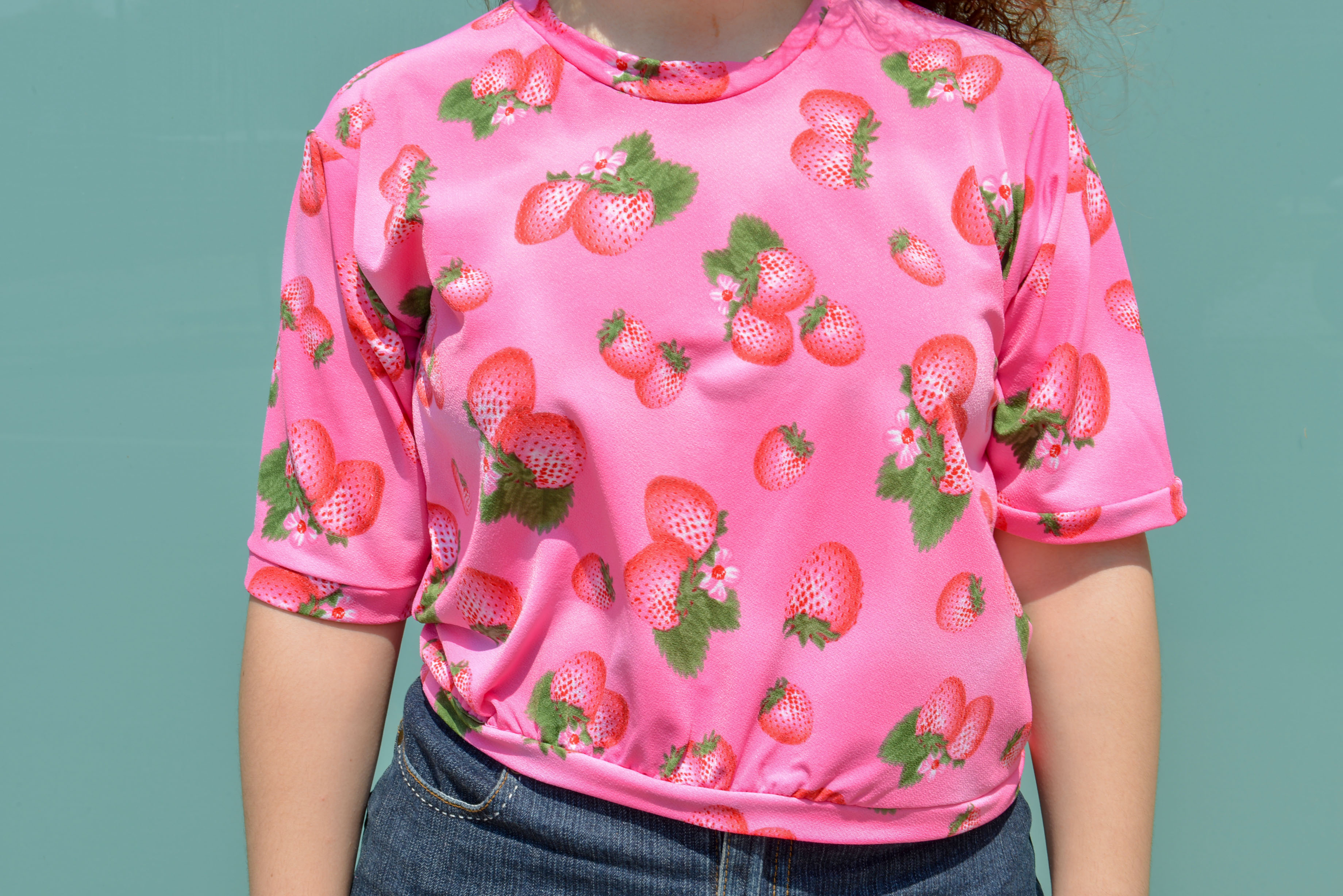 Transpirable and confortable elastic t-shirt with the cutest strawberry print. A MUST for berry lovers!