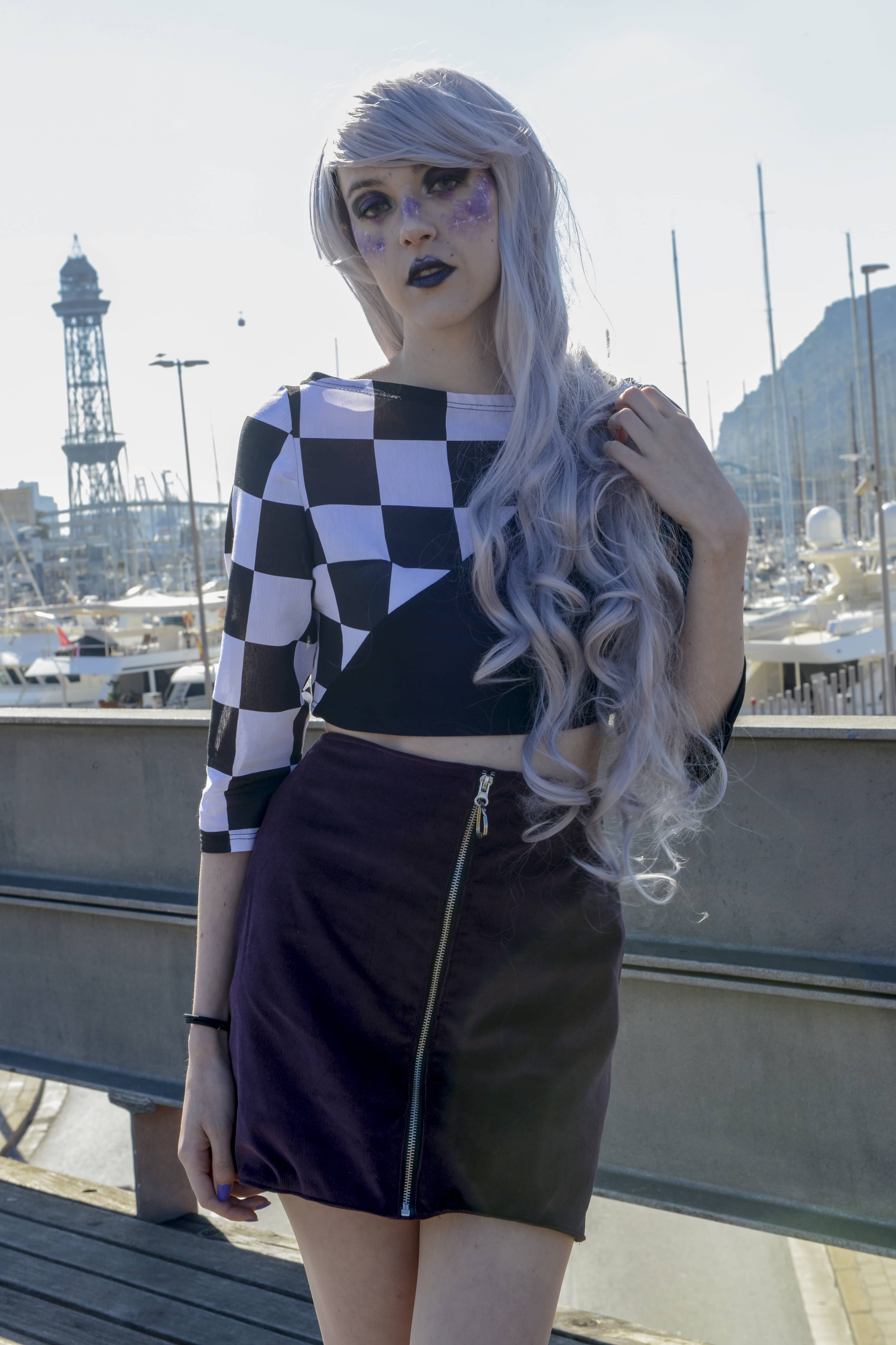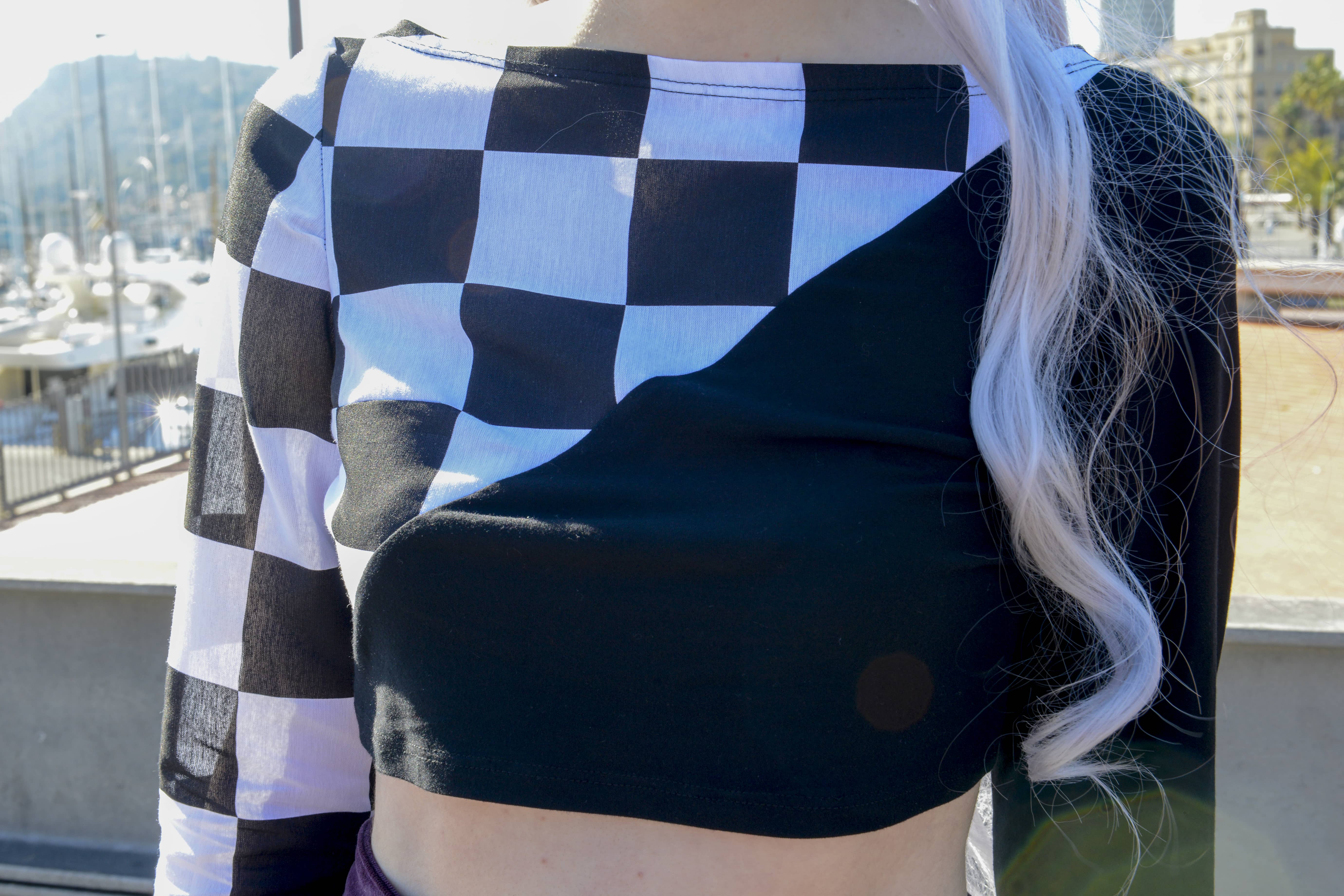 Cotton geometrical top mixing the hot racing print and our beloved black colour